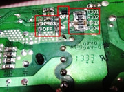 στο κάτω μέρος του PCB, τους καφέ smd πυκνωτές C302 (4,7nF / 50V) και C300 (100nF / 50V)