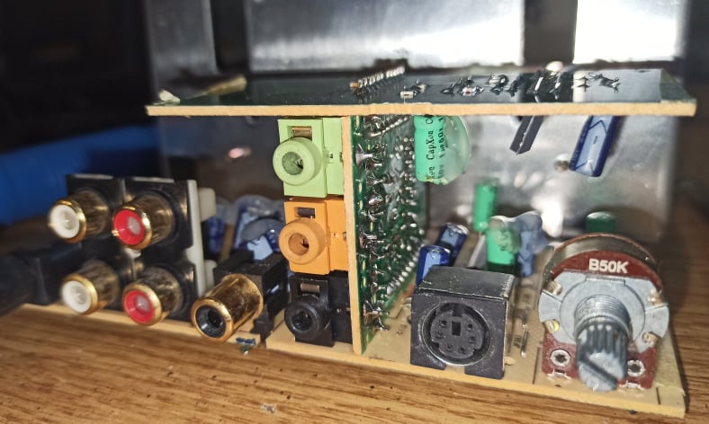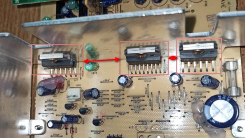 έλεγξε τις τασεις σε ολα τα ποδαράκια των 3 ολοκληρωμενων ενισχυτών (φωτο5). αν τις βρεις παρόμοιες, χρειαζεται παλμογραφος για ελεγχο του μονοπατιου του σηματος, καπου χανεται.